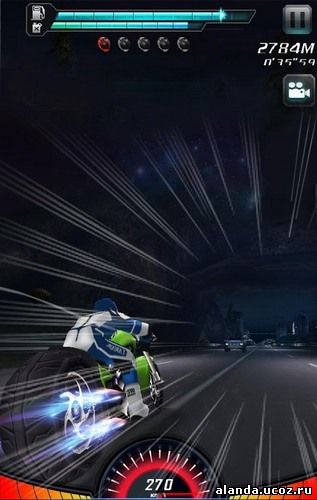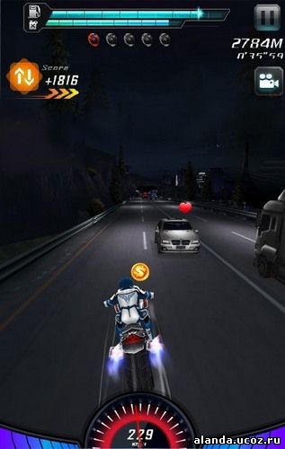 Traffic moto - управляйте скоростным мотоциклом и неситесь по ночным дорогам. Проезжайте через города и леса, мимо гор и снежных равнин. Объезжайте разнообразные препятствия и не столкнитесь с встречным транспортом на оживленных шоссе. Показывайте отличные результаты, зарабатывайте деньги и покупайте новые мотоциклы. Улучшайте Ваши мотоциклы и отправляйтесь покорять новые трассы. Проезжайте длинные туннели и мосты. Устанавливайте лучшее время прохождения трассы и поднимитесь на первые строки таблицы лидеров этой динамичной игры для Андроид.